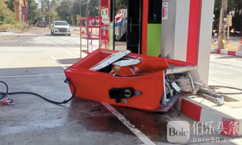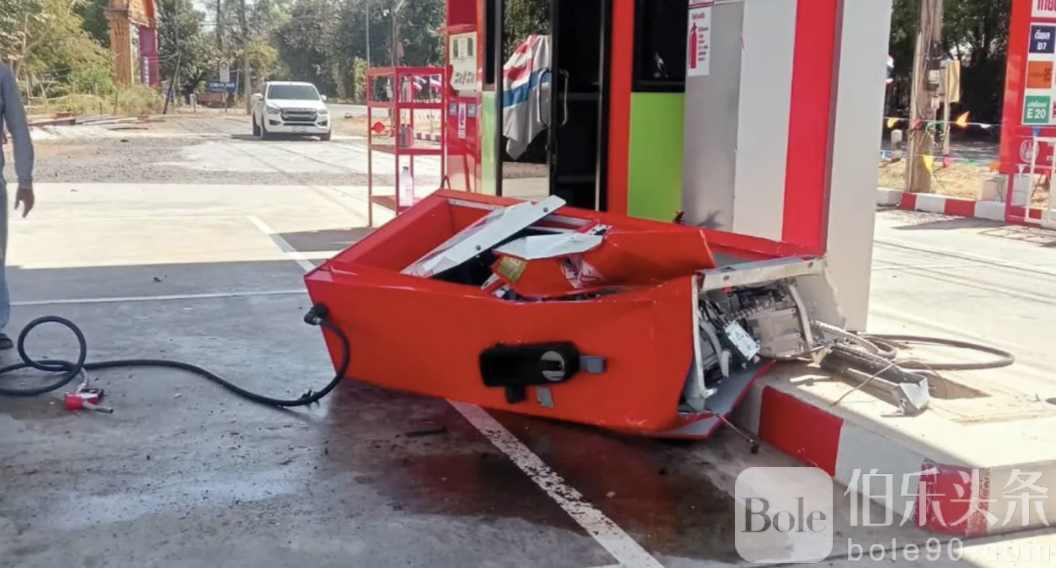 伯乐头条专讯:泰国巴真武里府发生惊险交通事件,一名男子驾驶皮卡车高速冲撞加油站,导致一名女员工受伤。警方调查后发现,肇事司机不但涉嫌偷车,更在供称中直言“因为想死才故意撞油站”,事件引发社会哗然。