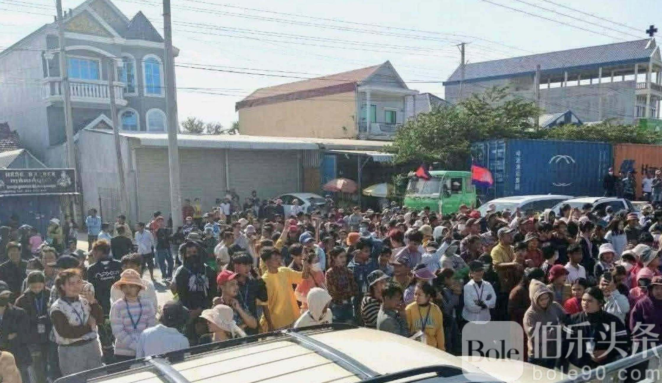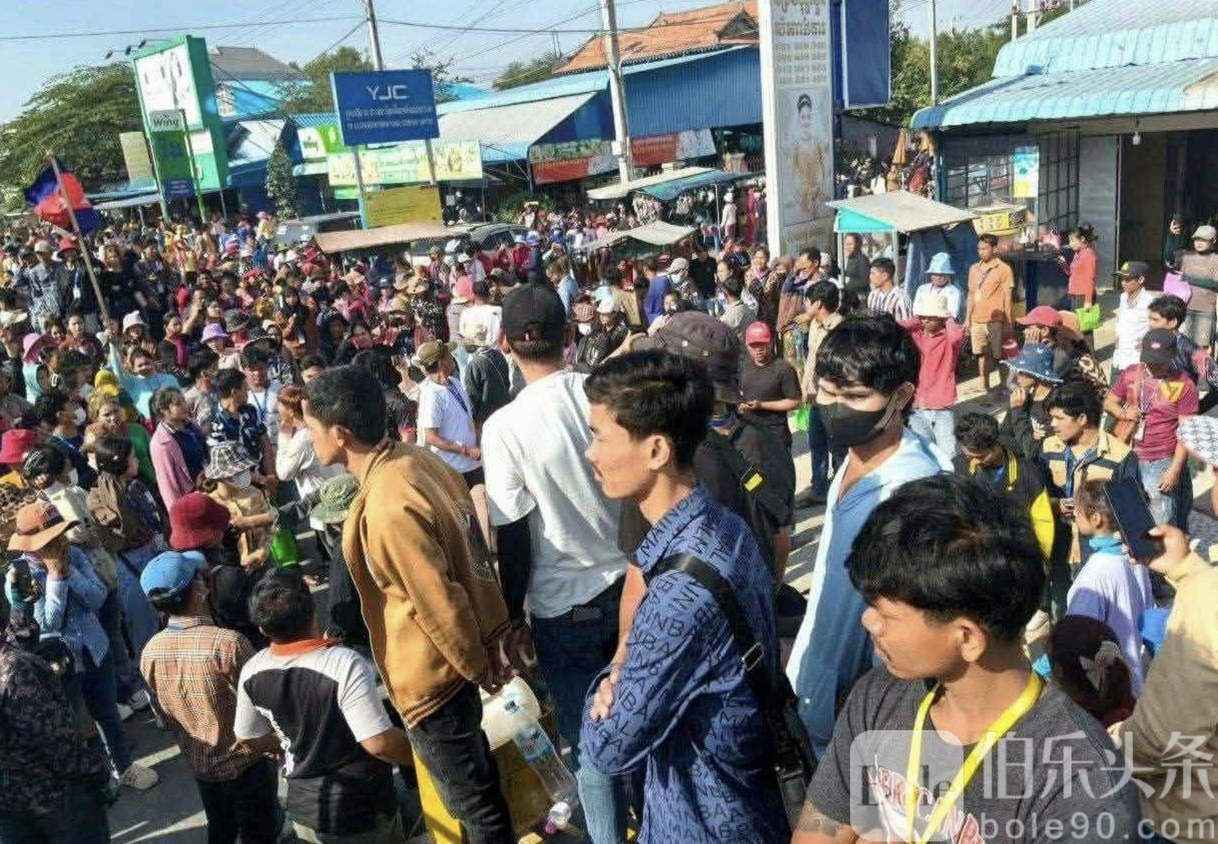 伯乐头条专讯:柬埔寨磅实居省贡比西县7日上午突发大规模劳资纠纷。一家名为“YJC”的制鞋厂内,约2300名工人集体停工抗议,并一度封堵3号公路,导致当地交通受阻数小时,现场气氛一度紧张。