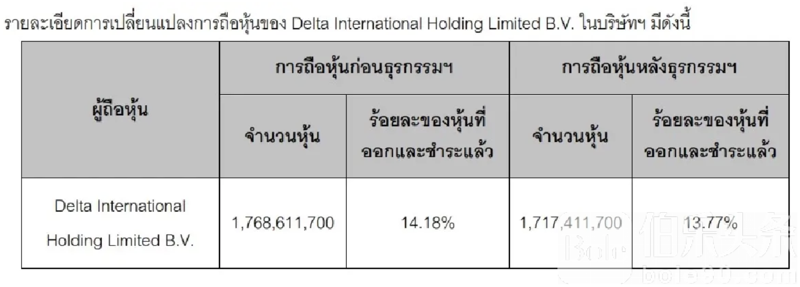 1月8日清晨泰国股市开盘即遭DELTA股价大幅抛售重创,SET指数一度下跌16.00点,报1,264.82点,跌幅1.25%,成交金额达1,861亿泰铢。DELTA(泰国德尔塔电子,Delta Electronics Thailand Public Co., Ltd.)受母公司Delta International Holding Limited B.V.出售45.8万股影响,股价单日下挫6.99%,每股最低触及171泰铢。