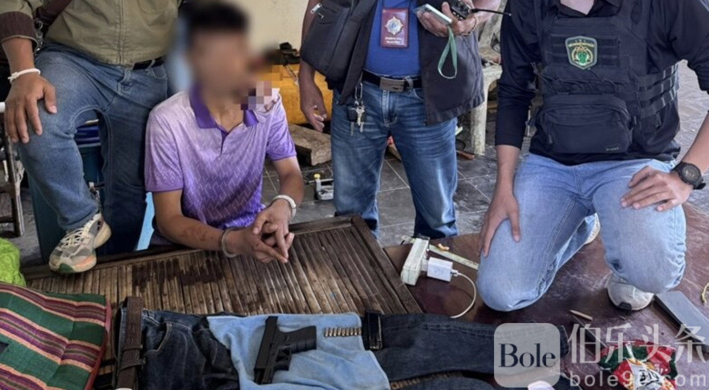 被捕男子为34岁的乌提猜(化名),系尖竹汶府某学院教师。警方在现场查获冰毒4粒,同时还搜出两把枪支,包括一把9毫米手枪及一把.380口径手枪,并分别配有弹药。