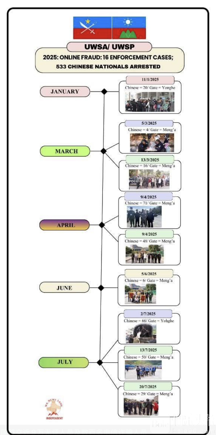 佤邦司法委员会指出,自2020年起,佤邦便开始向中方移交无证中国公民,截至2025年累计移交总数已达87,484人。这显示出佤邦在打击跨境违法行为以及处理无证人员方面的持续行动力度。