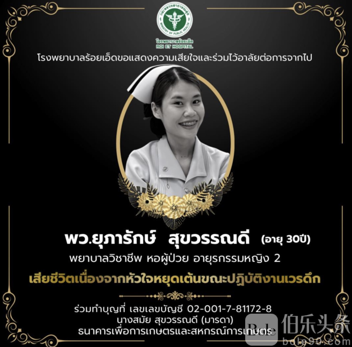伯乐头条专讯:一名年仅30岁的护士,在夜班岗位上倒下,再也没能醒来。泰国罗勇府(Roi Et)一则讣告,近日在网络上引发大量关注与哀悼,也意外掀起了一场关于“医疗体系与医护过劳”的集体反思。