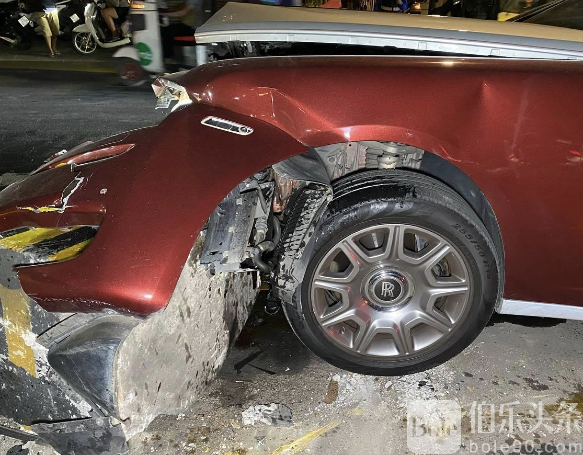 柬埔寨中国男子驾劳斯莱斯飙车!撞毁道路设备车辆严重受损