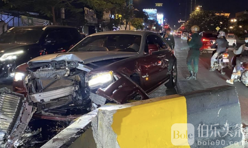 伯乐头条专讯:柬埔寨金边市隆边区1月11日晚间发生一起引发关注的豪车交通事故,一辆由中国籍男子驾驶的劳斯莱斯轿车在深夜高速行驶途中失控,猛烈撞上道路中央石制隔离护栏,车辆及公共设施均遭到严重损毁。