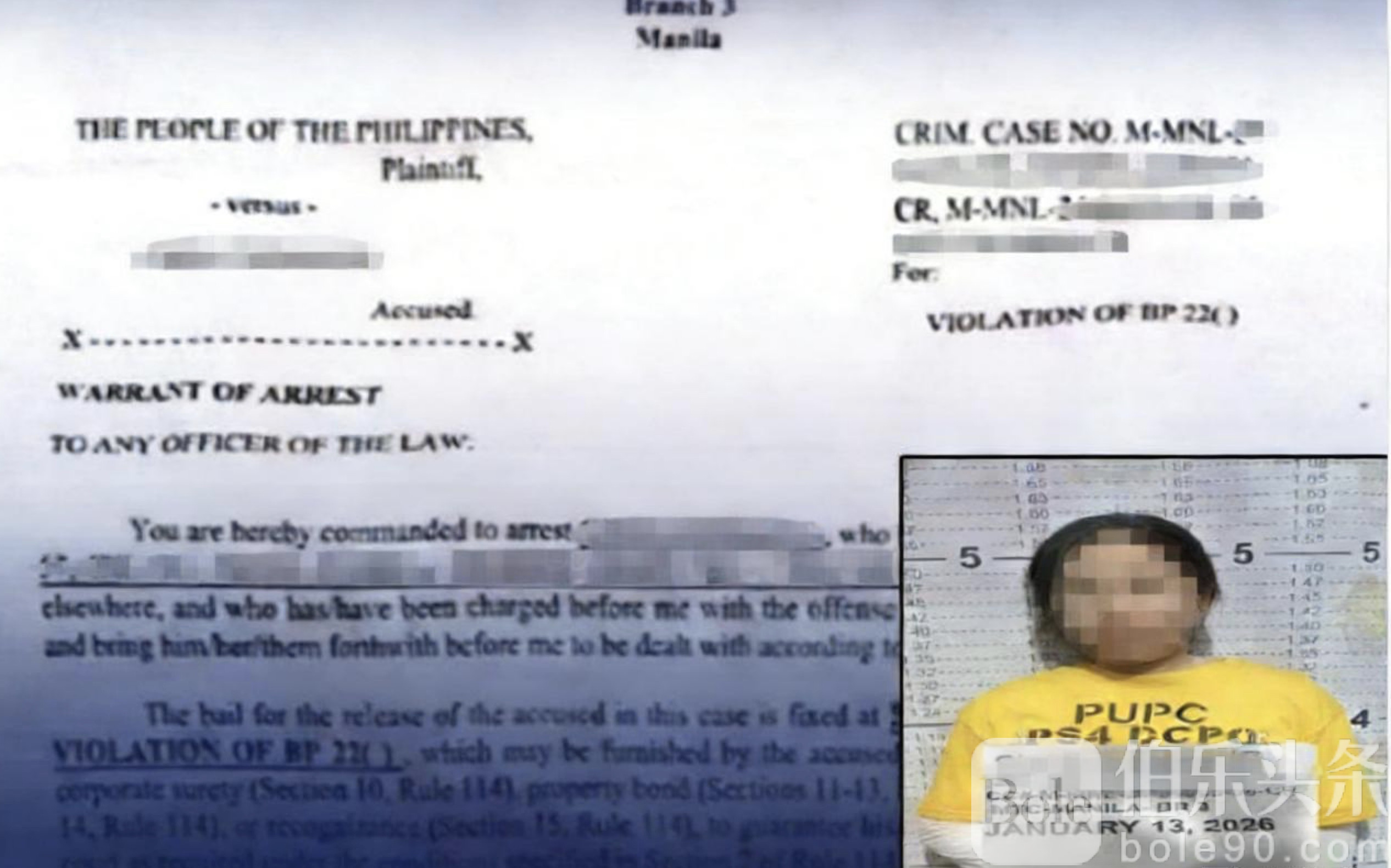 伯乐头条专讯:菲律宾警方近日在达沃市展开抓捕行动,一名因多宗“空头支票”案件被通缉的中国籍女商人,终于在当地落网。