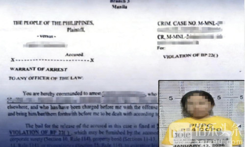 警方披露,这名女子长期从事商业活动,但因涉嫌多起开具空头支票的刑事案件,早已被司法机关列为重点追捕对象。相关逮捕令由马尼拉都会初级法院第三分庭于2025年9月1日签发,共涉及4起案件,每案对应的保释金额为12万比索。