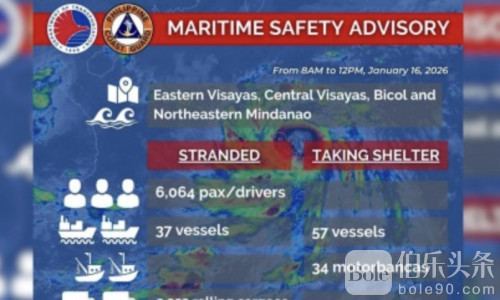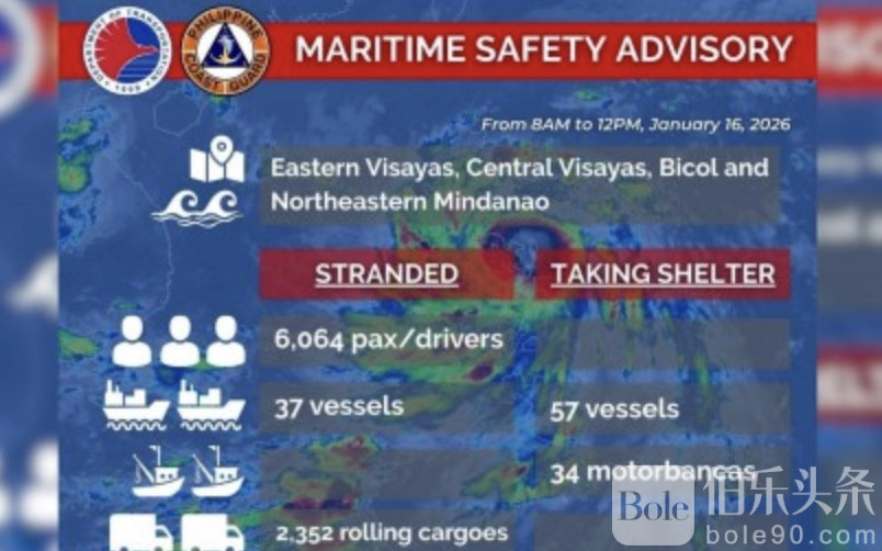 根据PCG发布的最新海上安全通告,截至当日,滞留港口的旅客人数已达6064人,受影响船只37艘,滚装货车2352辆,主要集中在东维萨亚斯、中维萨亚斯、比科尔地区以及棉兰老岛东北部。一些港口人流、车流叠加,现场秩序在一定程度上承受考验。