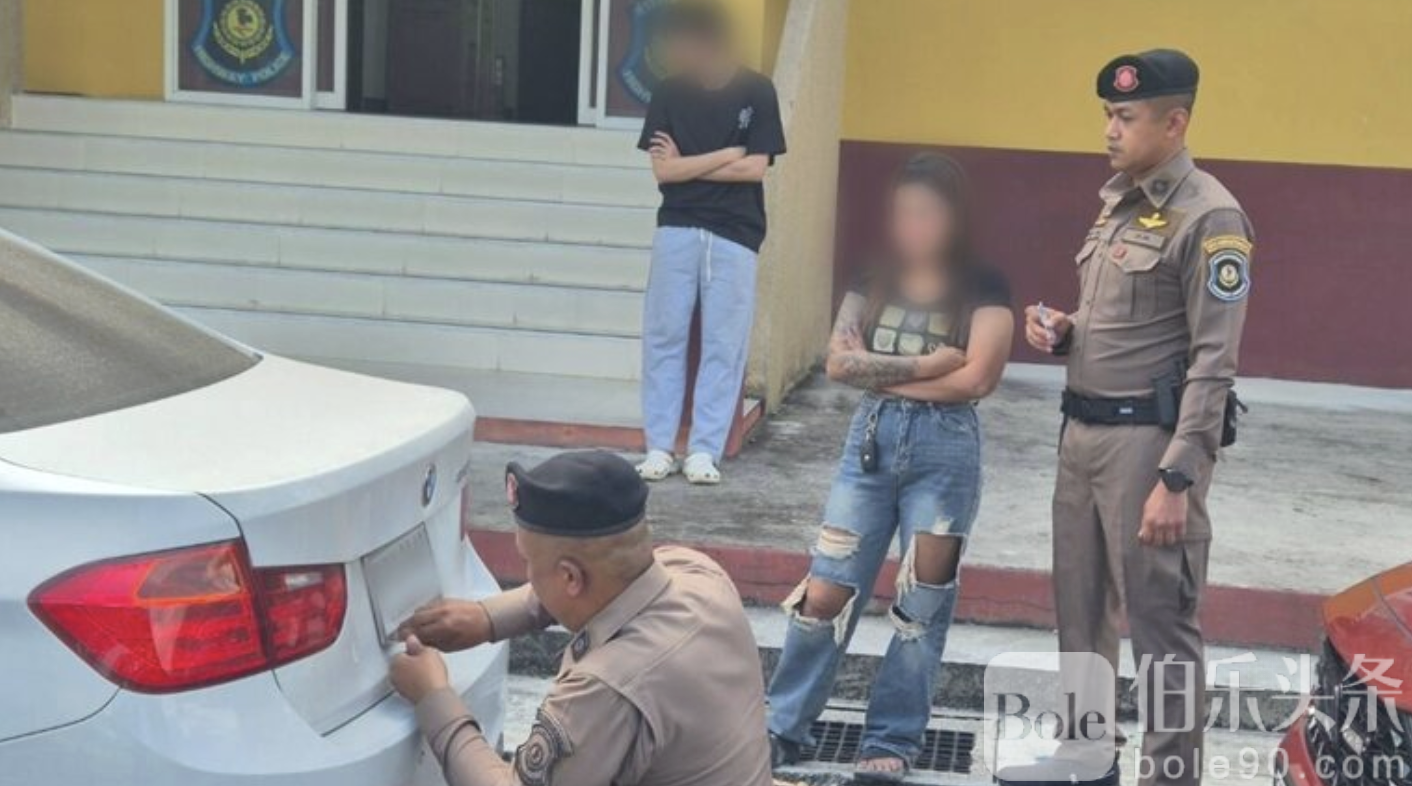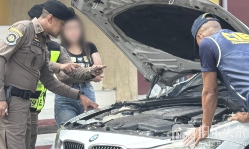 案件发生于1月18日上午,泰国公路警察总指挥部接获指令后展开行动。当天,由公路警察第七分区巡逻小组在四号国道第883至884公里路段、攀牙府直辖县泰冲镇一带巡查时,发现一辆白色宝马轿车停靠在路旁,其悬挂的车牌在字体、比例及防伪细节上,与陆路运输厅规定格式明显不符。