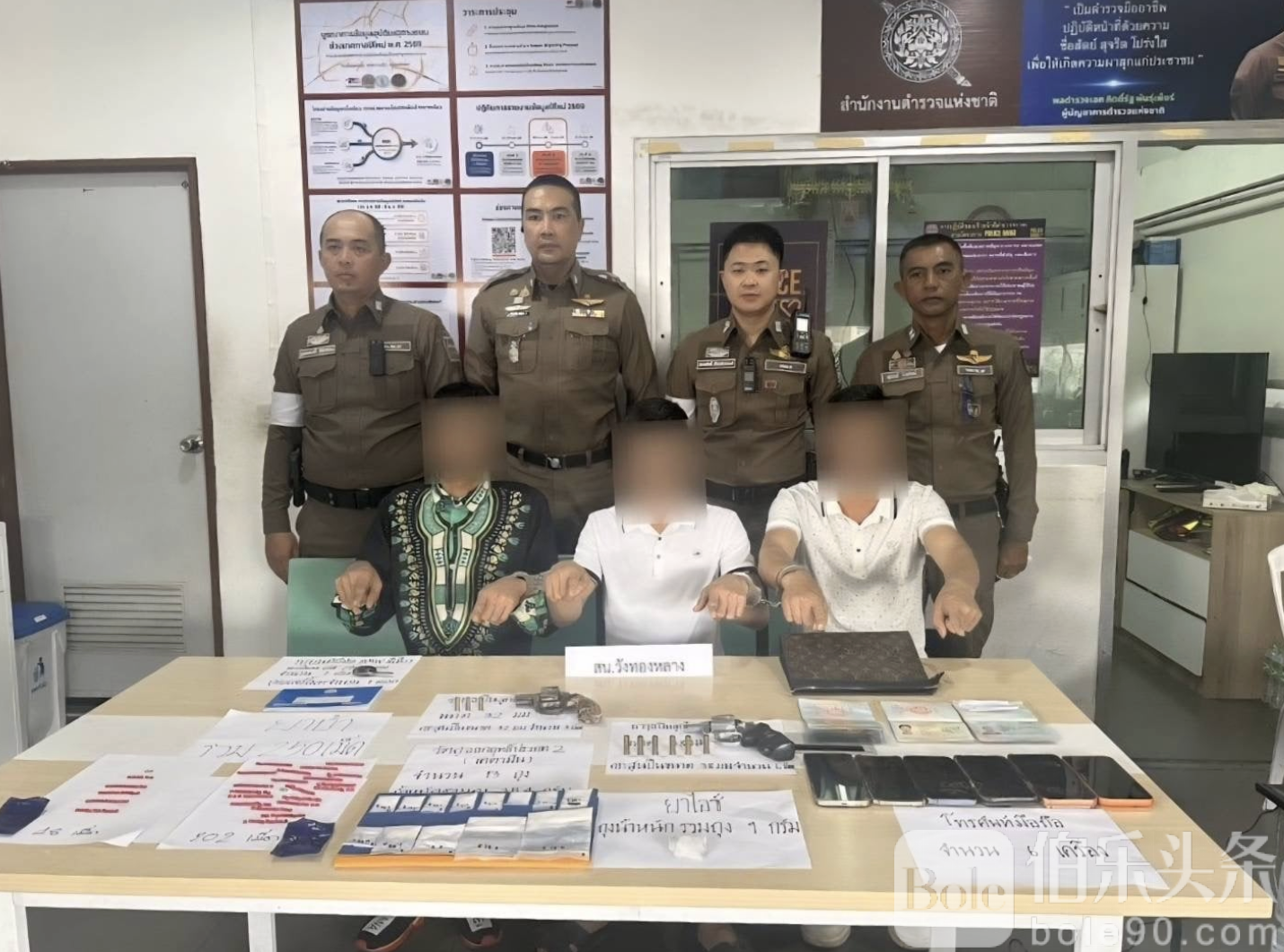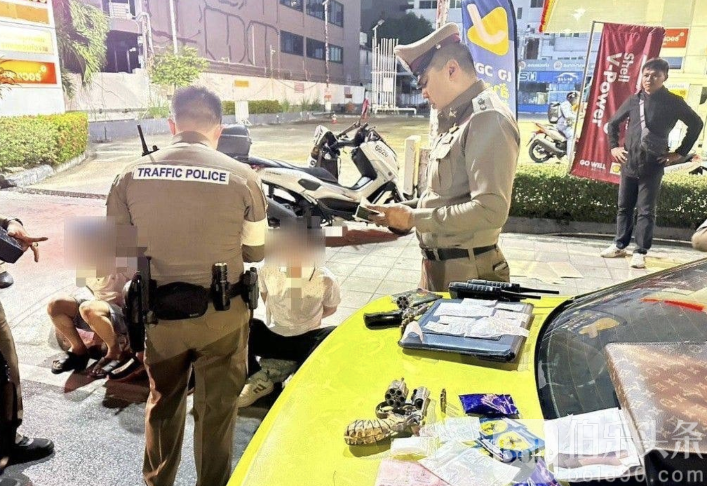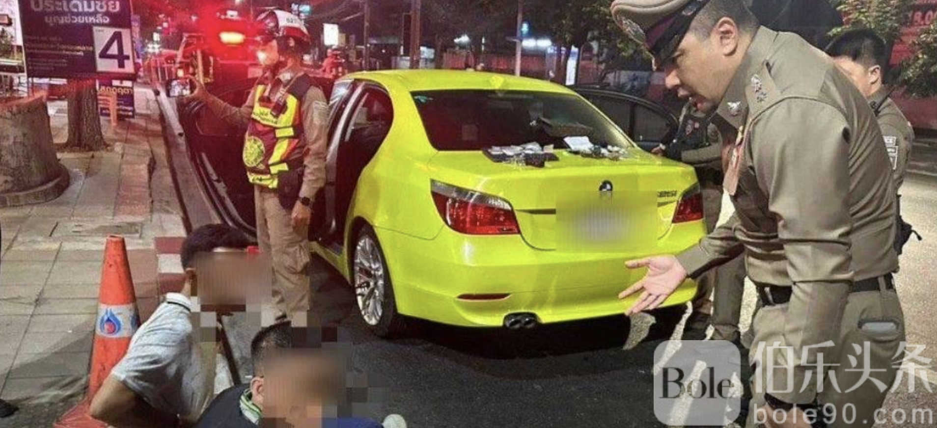 伯乐头条专讯:泰国曼谷华通区日前发生路检抓捕大案。1月17日凌晨4时30分,曼谷华通区交警在一处路检点对一辆前牌无牌的BMW进行检查,发现车上三名越南籍人员行为可疑,遂对其进行搜查。