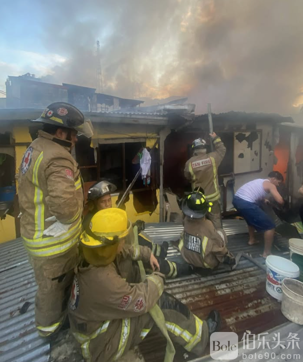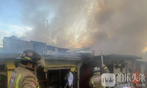 伯乐头条专讯:菲律宾曼达卢永市阿迪森山社区1月19日周一清晨发生大火,约100户民宅受损,5人不同程度受伤。火灾发生在上午6点后,消防部门接报后迅速出动,第一警报于6:12响起,第二警报6:28,第三警报7:34。火势于上午8:56得到控制,并在9:17完全扑灭。