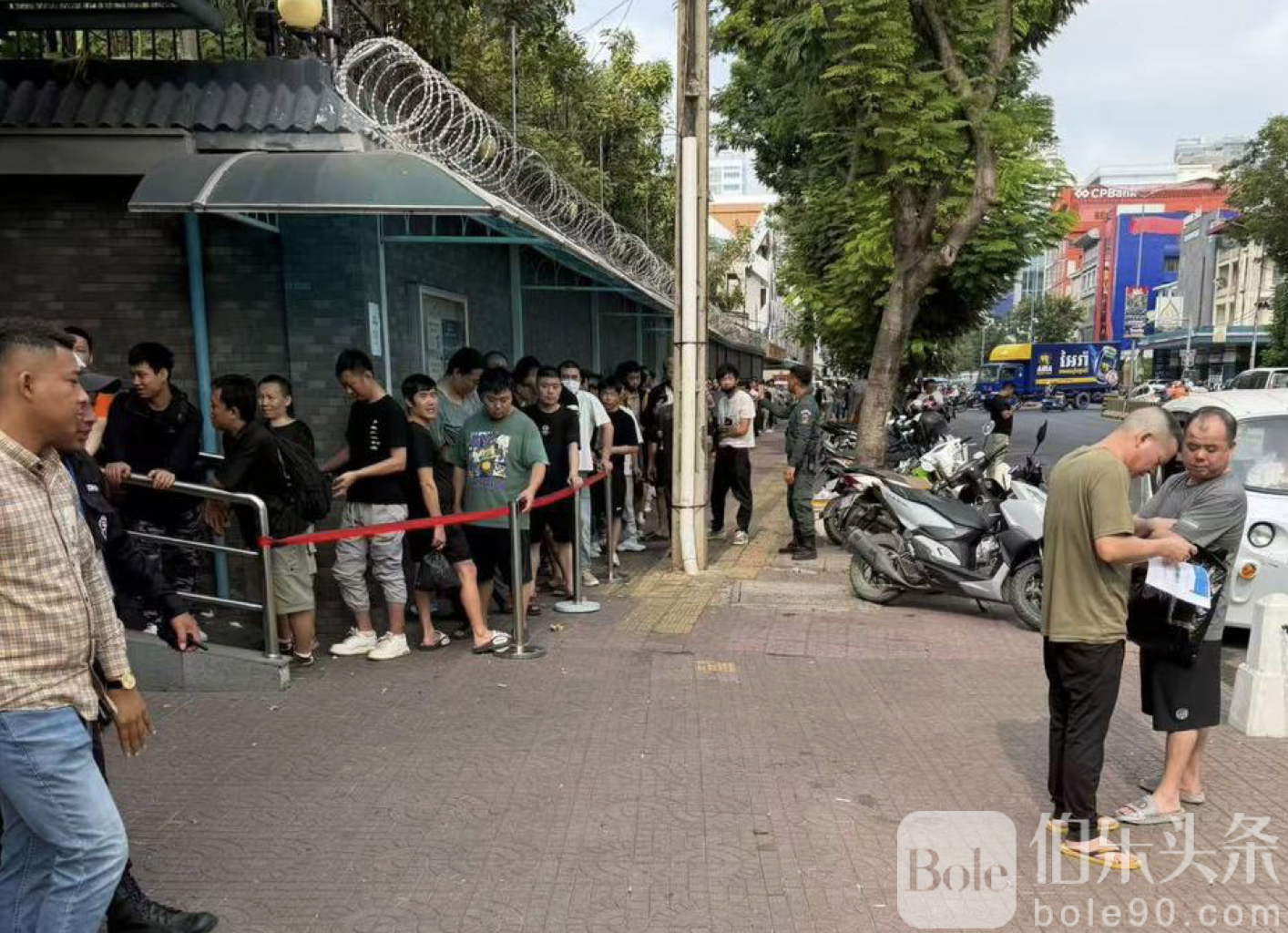 金边大使馆外长龙不断,街头中国人排队急办回国证!