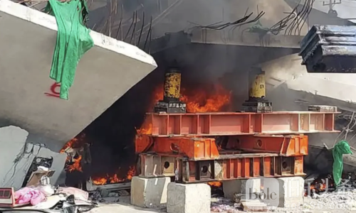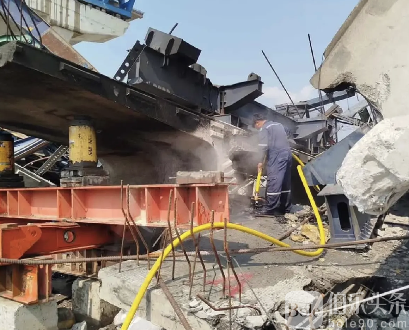 连环险情!泰国吊车坍塌残骸油料泄漏引燃火焰
