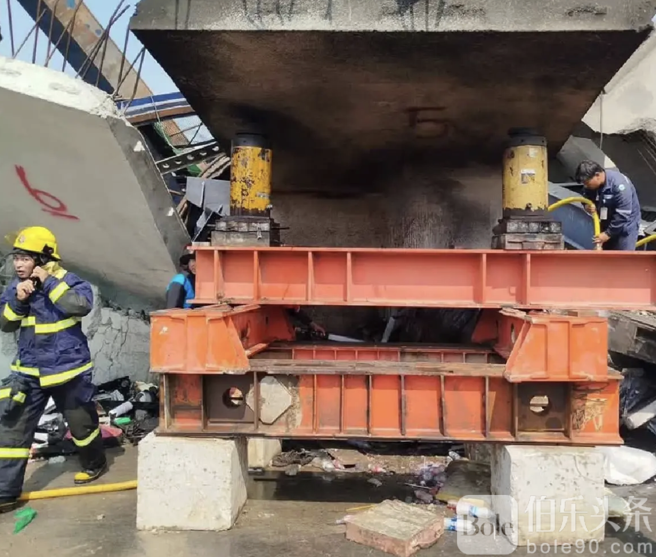 技术初步调查显示,起火原因可能与吊车液压系统受撞击有关:坍塌残骸或施工废料撞击液压系统,导致油料泄漏,遇到高温金属或摩擦产生火花,从而引发火灾。幸运的是,由于工人和工作人员在此前坍塌事故中已保持警觉,本次火灾未造成人员伤亡。
