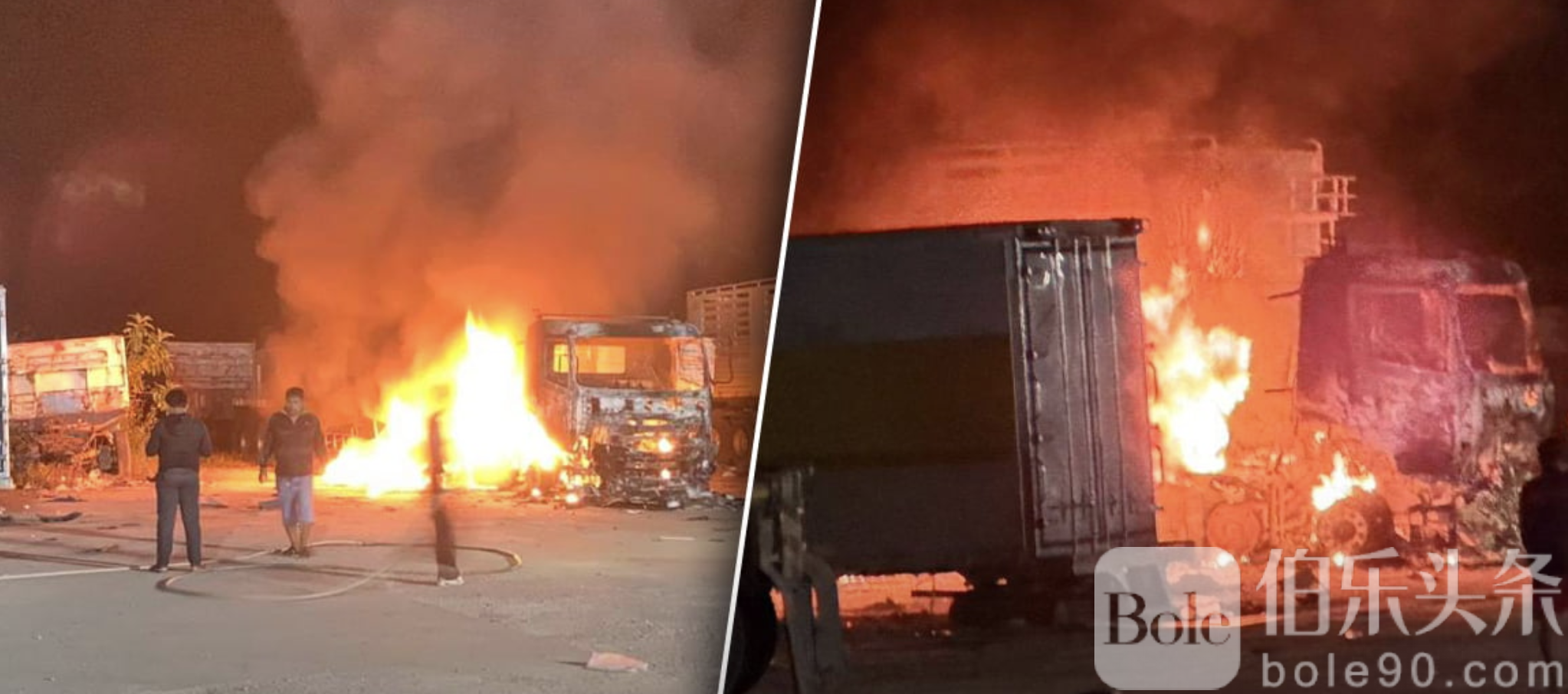 伯乐头条专讯:泰国南部奈拉差府(Narathiwat)苏海哥洛克县(Sungai Kolok)近日发生严重纵火爆炸事件,一处涉及非法私油交易的仓库停车场凌晨遭人爆炸纵火,两辆挂车被烧毁,所幸无人伤亡。