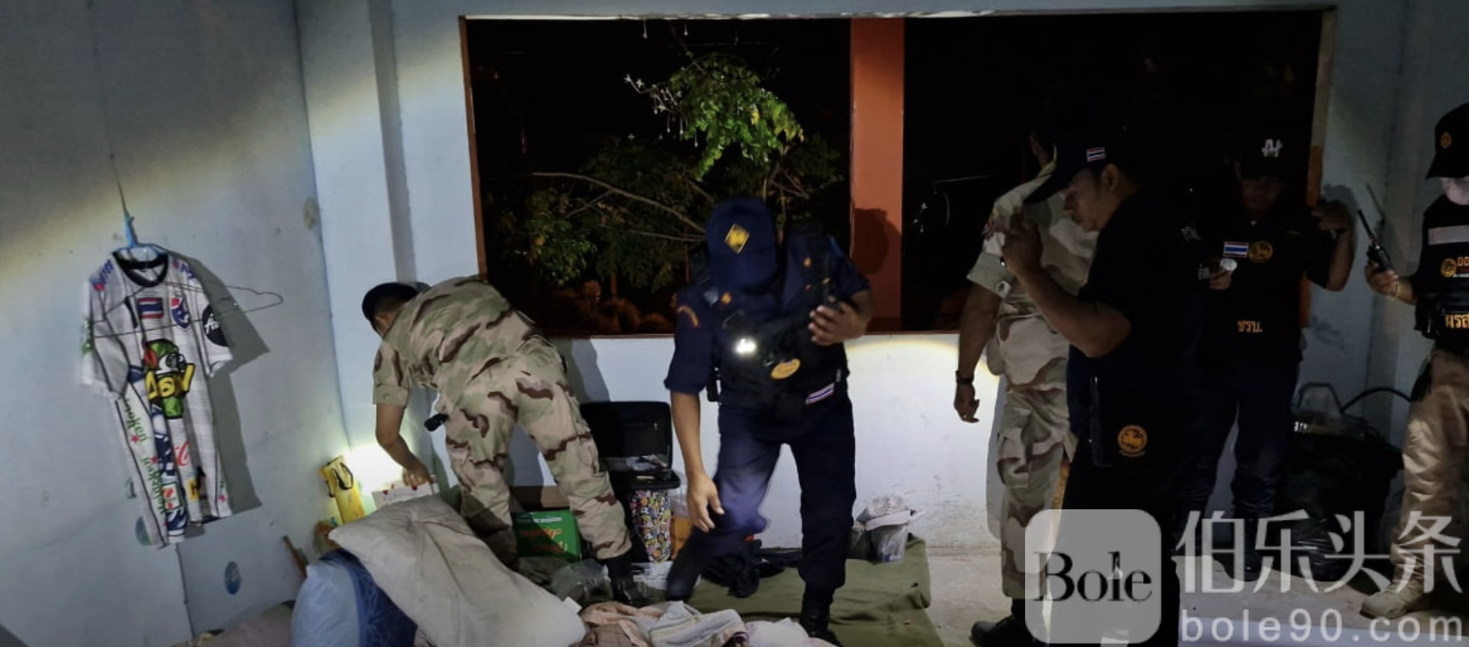 执法人员在一栋三层废弃建筑内发现一名男性流浪者,系来自呵叻府的外来人员。现场检查未发现违禁物品,但警方已完整记录其身份资料并拍照存档,随后将其带往差安县志愿防卫队驻地暂时安置。