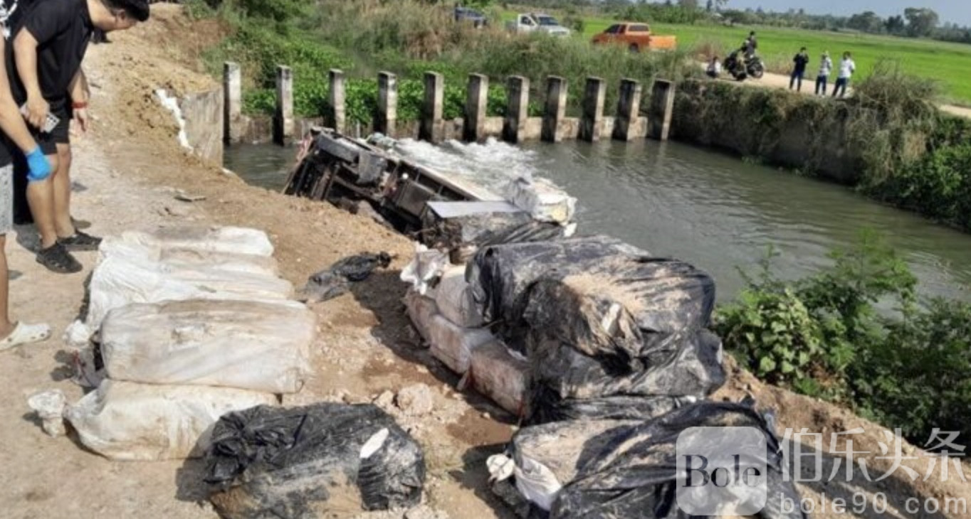 事件发生于2026年1月22日凌晨。警方接报,在拉布里府城市地区,靠近水圳路段发现一辆翻覆的红白相间大卡车。车上除了司机42岁的宋吉特(化名)轻微受伤外,堆放的近20袋冰毒引起了执法人员的高度警觉,每袋约20万颗。
