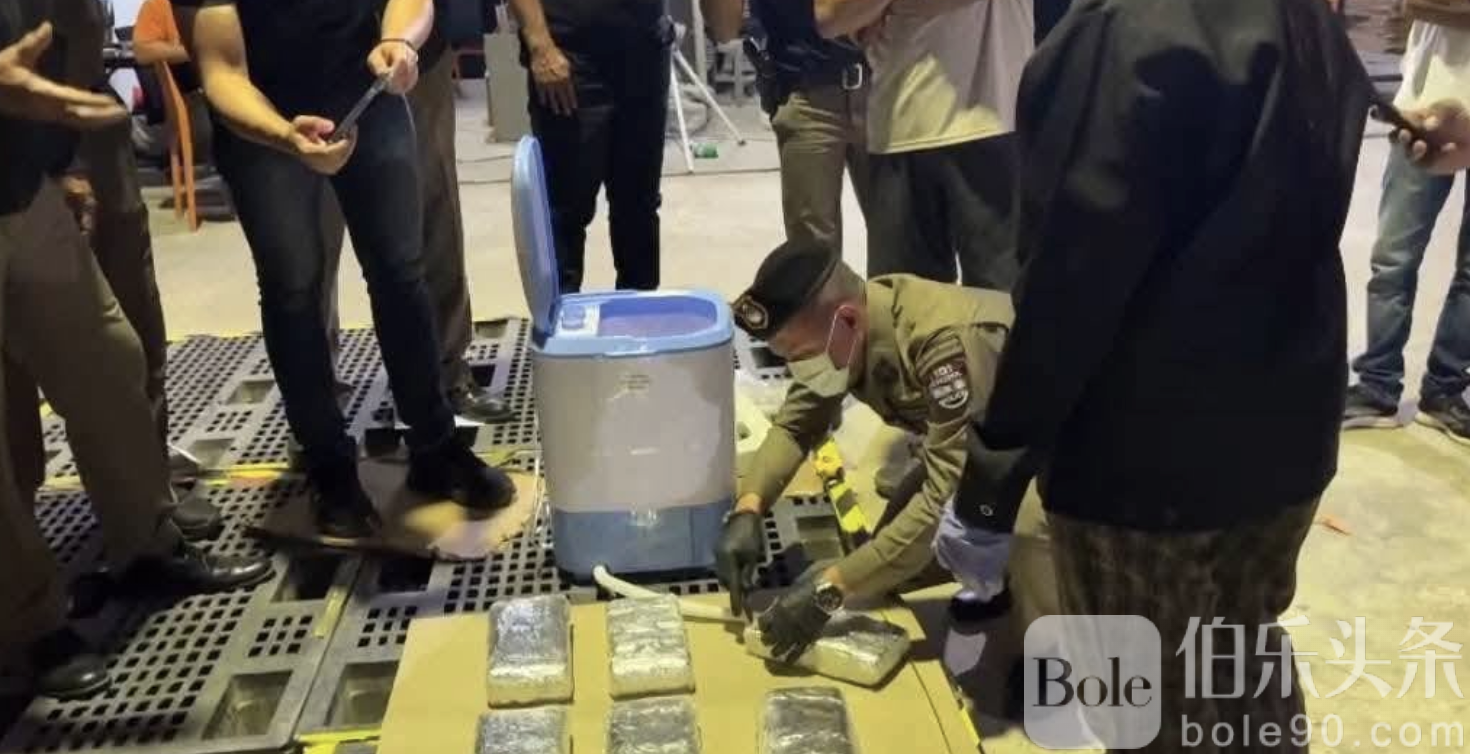 伯乐头条专讯:泰国南部那空叻差是府警方近日扩展“沙恩·通钦”毒品案调查,缴获冰毒76,760颗。令人震惊的是,这批毒品竟被藏在一台迷你洗衣机中,通过私人快递公司运送,企图蒙蔽警方视线。