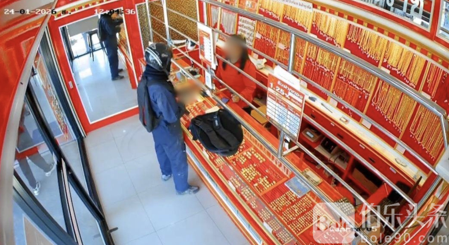 伯乐头条专讯:泰国金价持续走高之际,一起持枪抢劫未遂事件引发关注。1月24日中午,泰国呵叻府市区一家金店突遭一名持枪男子闯入抢劫。嫌疑人高喊“只要黄金、不伤人”,却在员工按下紧急警报后仓皇开枪制造混乱,最终未能得手,空手逃离现场。