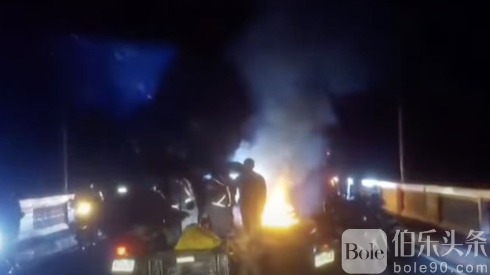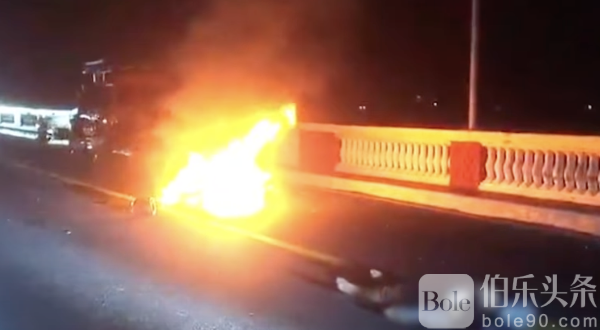 据当地媒体报道,事发于绕行桥路段。当摩托车撞上停靠的车辆后,猛烈撞击导致摩托车起火,骑士被火焰吞没,而乘客由于撞击力被抛出,虽受伤但幸存。现场目击者称,火势迅速蔓延,现场一度浓烟滚滚,桥面交通一度受阻。