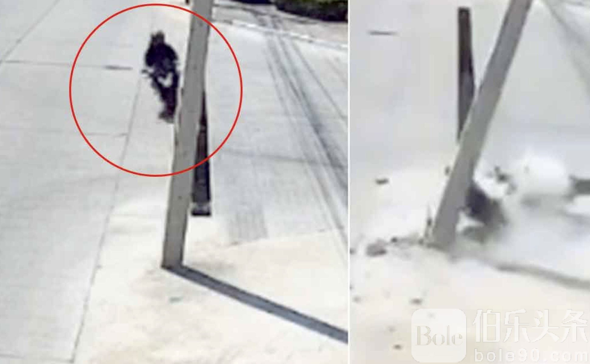现场监控画面显示,事发时该摩托车以高速行驶,排气声震耳欲聋,随后突然失控直冲电线杆,巨大冲击力将电线杆撞断,骑士被抛向空中翻滚数圈后重重坠地,一动不动,场面极为惊心。