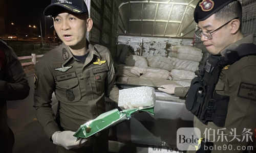 伯乐头条专讯:泰国巴吞他尼府1月26日深夜上演惊心动魄的缉毒追逐战,一辆装载大量毒品的密闭式皮卡车在检查站拒不停车,强行冲卡逃逸,随后弃车潜入大片草丛。警方在车内查获15大袋“冰毒”,每袋约25公斤,总量高达数百公斤,目前正全力追捕在逃司机。