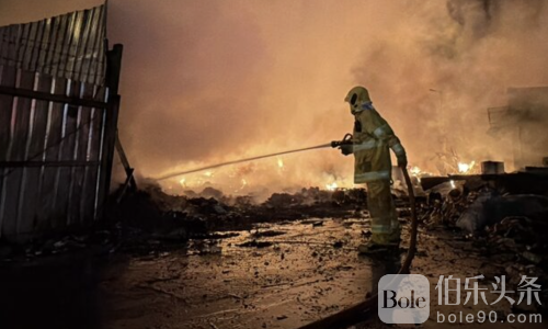 伯乐头条专讯:泰国北榄府今晨发生一起严重火灾事故,一家旧货回收店突发猛烈火情,现场伴随多次爆炸巨响,火势迅速失控,黑烟滚滚直冲天际,消防部门紧急调派超过20辆消防车赶赴现场,全力展开灭火行动。