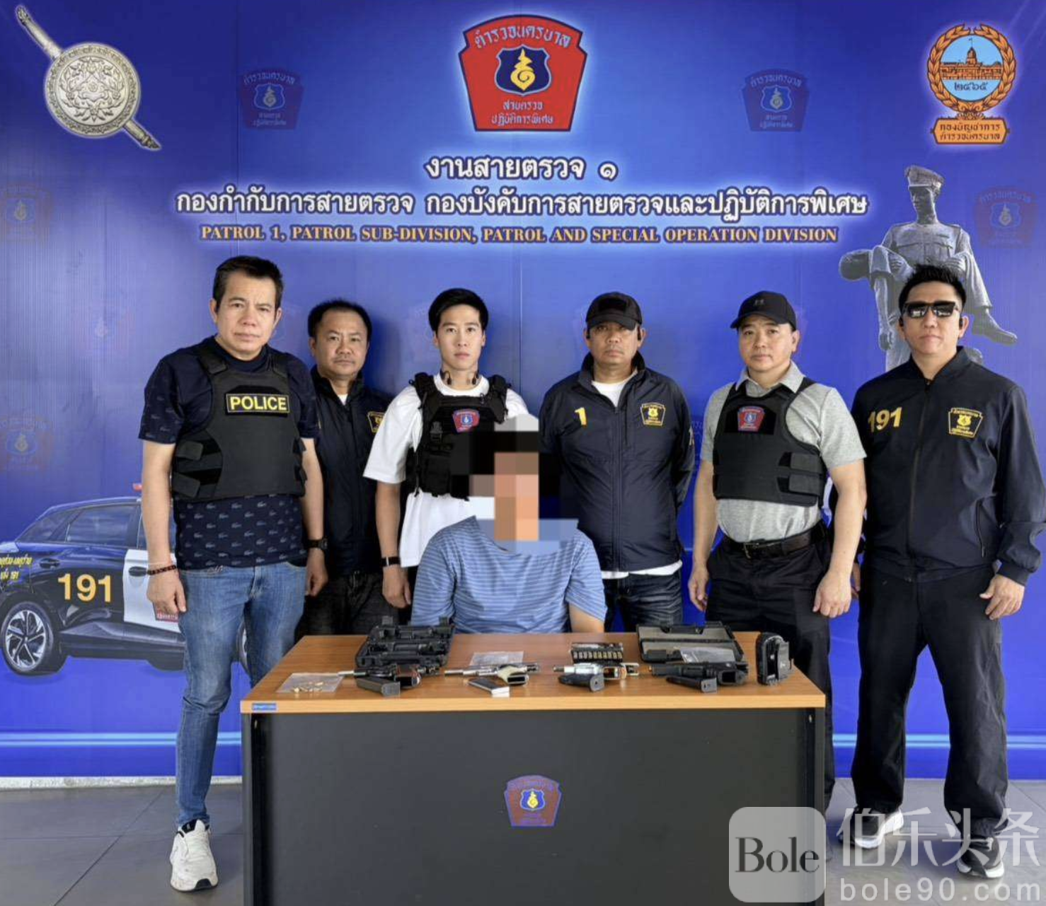 伯乐头条专讯:泰国警方持续强化对非法枪支流通的打击力度。当地时间1月27日中午,曼谷警方在拍凤裕庭路(帕凤裕庭路)巷内的赛迈区成功破获一起非法枪支交易案件,当场拘捕一名涉嫌通过社交平台贩卖枪支的男子,起获手枪4把及子弹82发,及时阻断枪械流入社会。