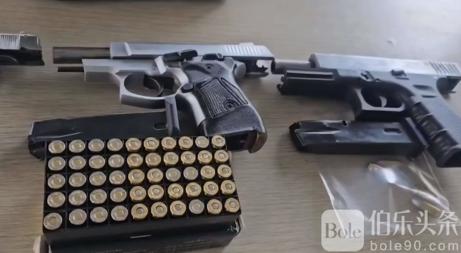 警方当场将嫌疑人瓦他育(音译,绰号“博伊”),29岁控制,并查扣涉案物证,包括:手枪4把;不同口径子弹共82发