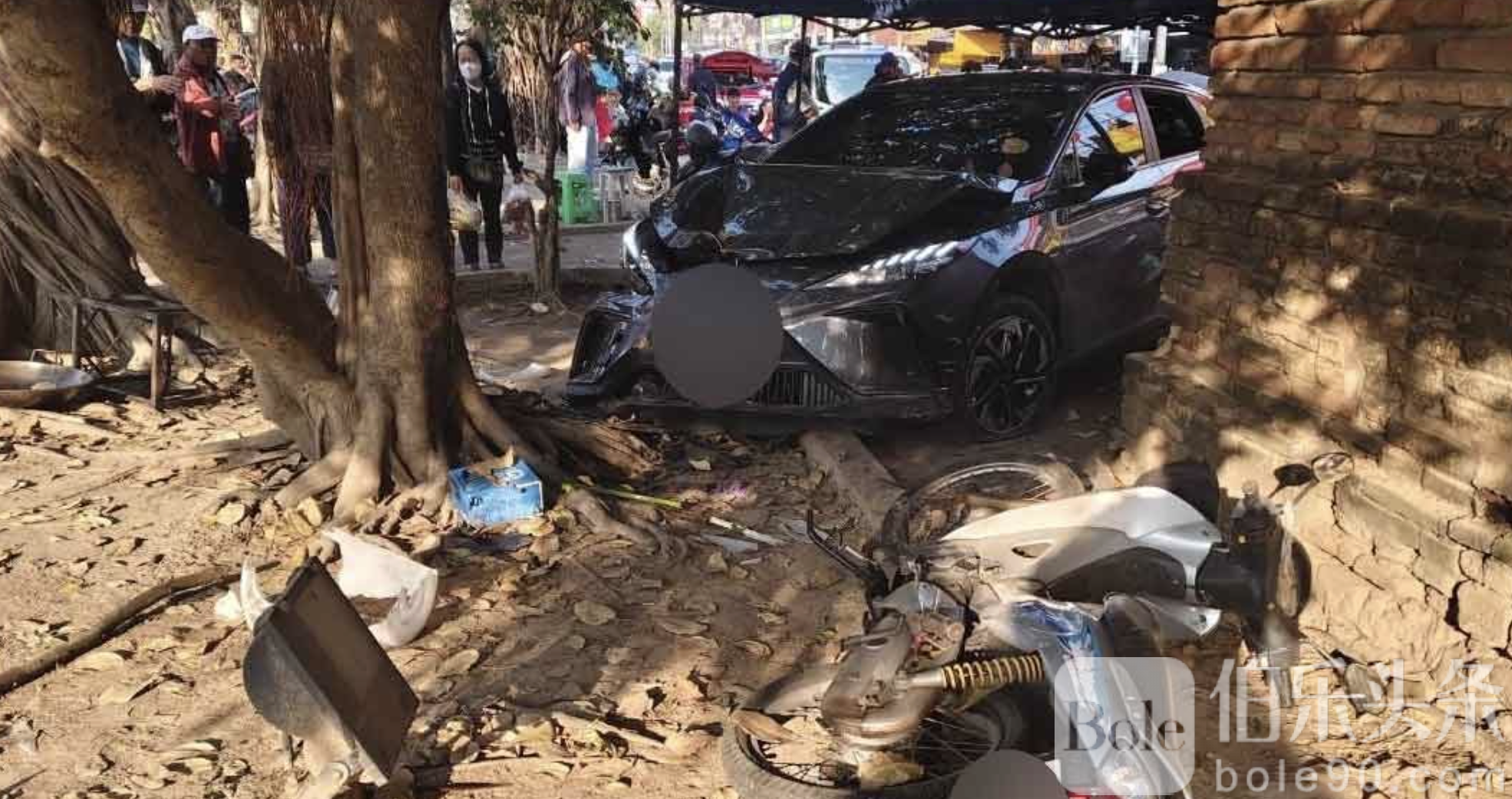 伯乐头条专讯:1月28日,清迈市中心发生一起电动车失控事故,一辆黑色电动车在送乘客途中冲撞街头豆浆店,导致店主及两名西班牙游客受伤。事故发生在清迈古城墙附近的门市区域,警方与救援人员迅速赶到现场处理。