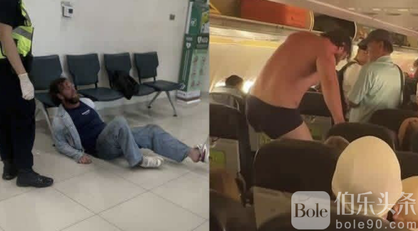 Bole新闻专讯:一名41岁的俄罗斯男子在越南芽庄飞往曼谷的泰国亚洲航空航班上突然情绪失控,不仅在机舱内脱去衣物四处走动,还大声喧哗、频繁进出洗手间,并不断纠缠机组人员,甚至要求打开舱门,令机上乘客与空服员一度陷入恐慌。