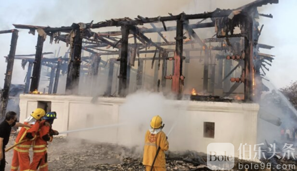 初步勘查发现,整座主殿为缅甸风格木结构建筑,内部供奉的主佛像、古老经书、木雕、彩色玻璃装饰及多件历史文物几乎全部被烧毁,损失极为惨重。