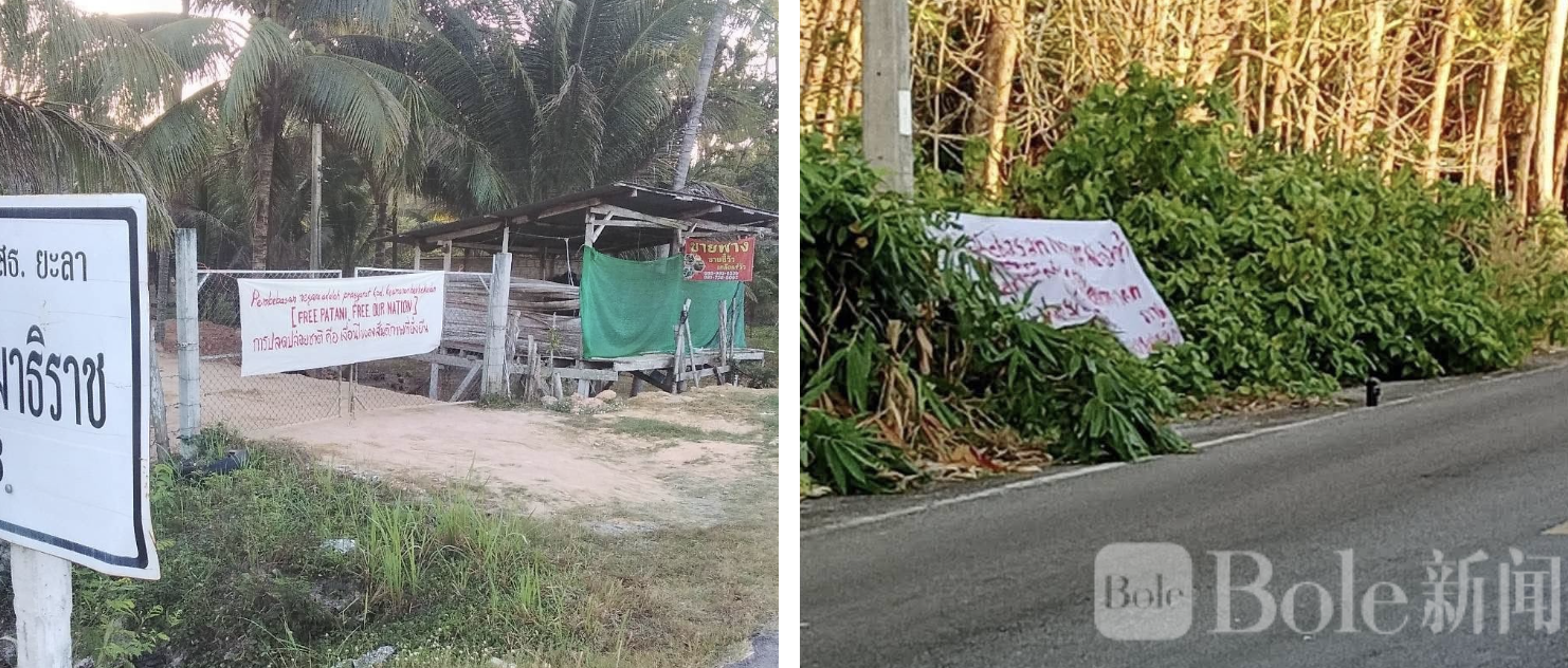 Bole新闻专讯:泰国南部三省巴塔尼、也拉、那拉提瓦在清晨发现多处分离主义横幅,涉及地区安全部门立即行动,紧急清理并排查可疑物品,疑为BRN(民族解放军)成员在当地进行象征性示威活动。