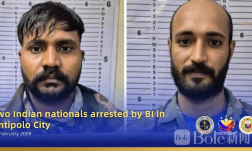 Bole新闻专讯:菲律宾移民局(BI)情报部门于1月29日在安蒂波洛市执行任务时,成功逮捕两名印度籍男子,分别是28岁的Sukhbir Singh和30岁的Sawan Singh。两人被发现居住在San Jose区的住宅区内,并在行动中被移民局人员控制。
