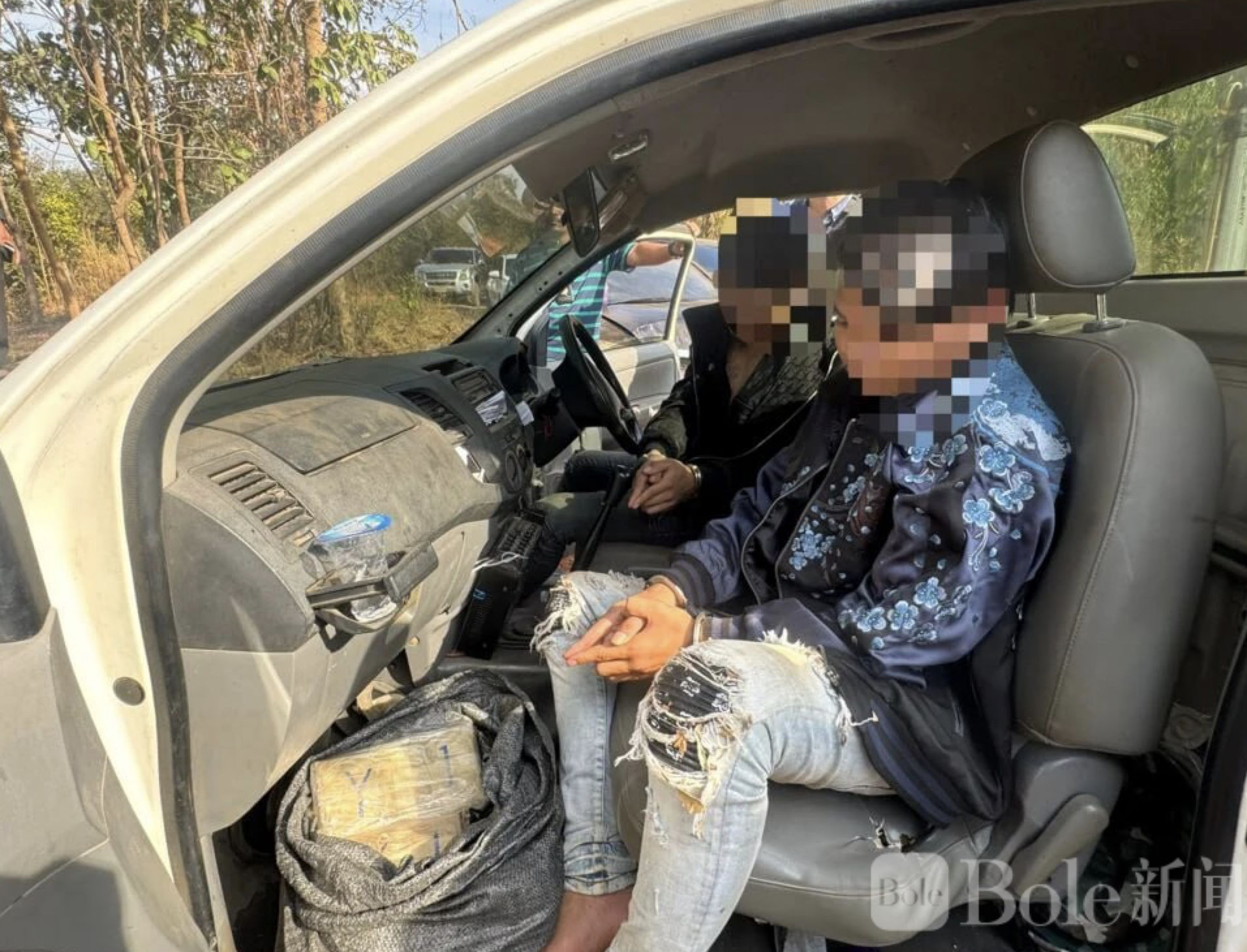 当天,边境巡逻队接获线报后,在检查站拦截可疑车辆。嫌疑人见状,竟猛踩油门高速逃逸,最终车辆失控撞上岩石,前轮爆裂被迫停下。警员当场将两人抓获,并在车内发现装满6.6万粒冰毒的麻袋。