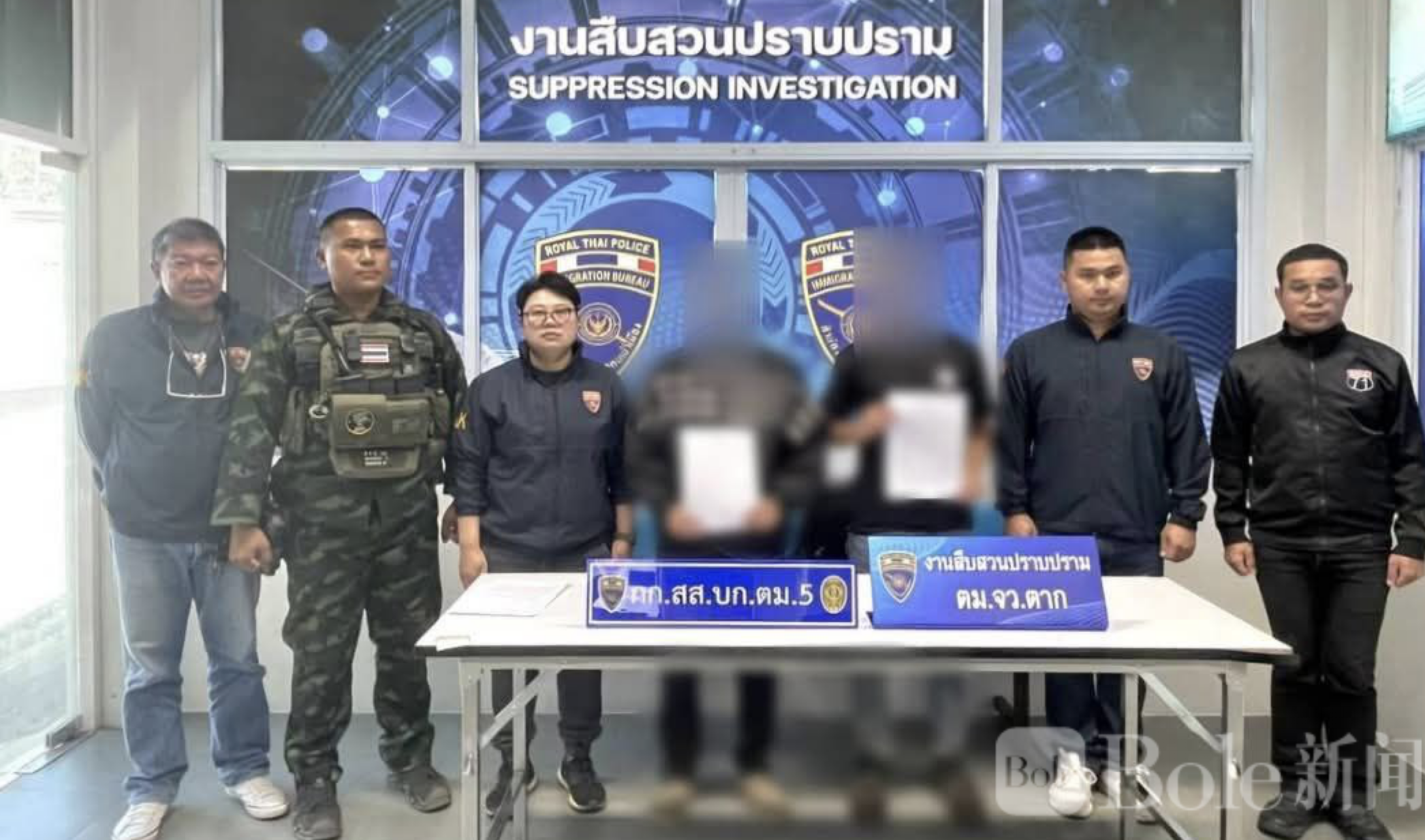 Bole新闻专讯:2026年2月7日上午,泰国达府警方联合军方与边防人员,在达府湄索县一处边境村庄展开突击行动,成功抓获2名非法入境的中国籍人员,及时阻断了一起从缅甸方向偷渡进入泰国的跨境行动。