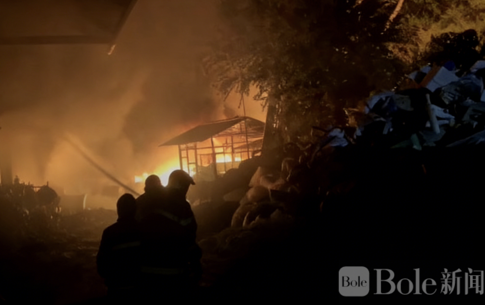 Bole新闻专讯:泰国东北部呵叻府市区2月9日凌晨突发严重火灾,一家大型废品回收仓库被烈焰吞噬,火势在强风助推下迅速蔓延,相关单位紧急调集14辆消防车和40多名消防及救援人员全力抢险,场面一度十分惊险。