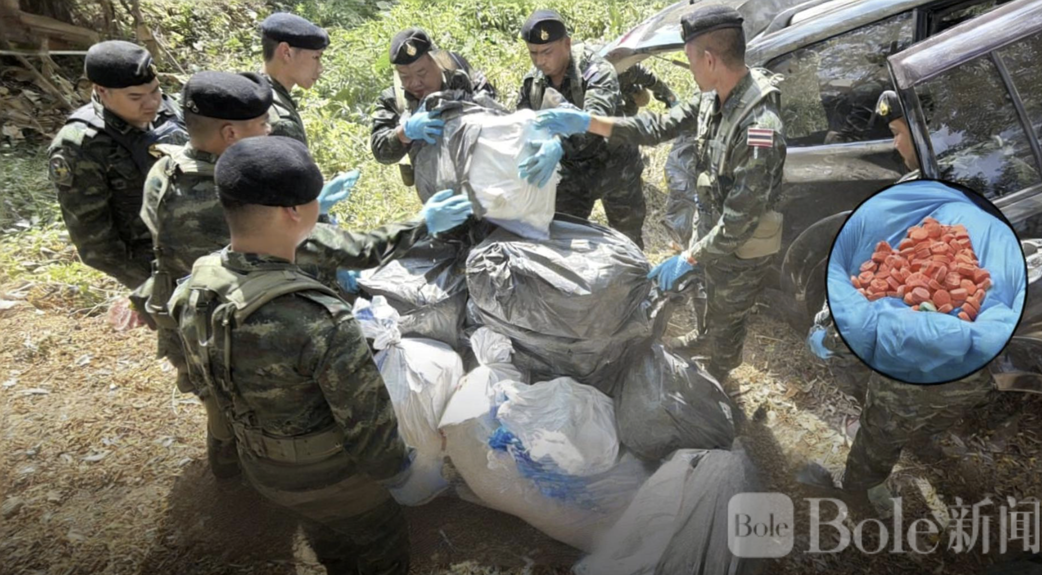 泰国边境大行动:缴获五百多万颗冰毒,毒贩弃车逃跑