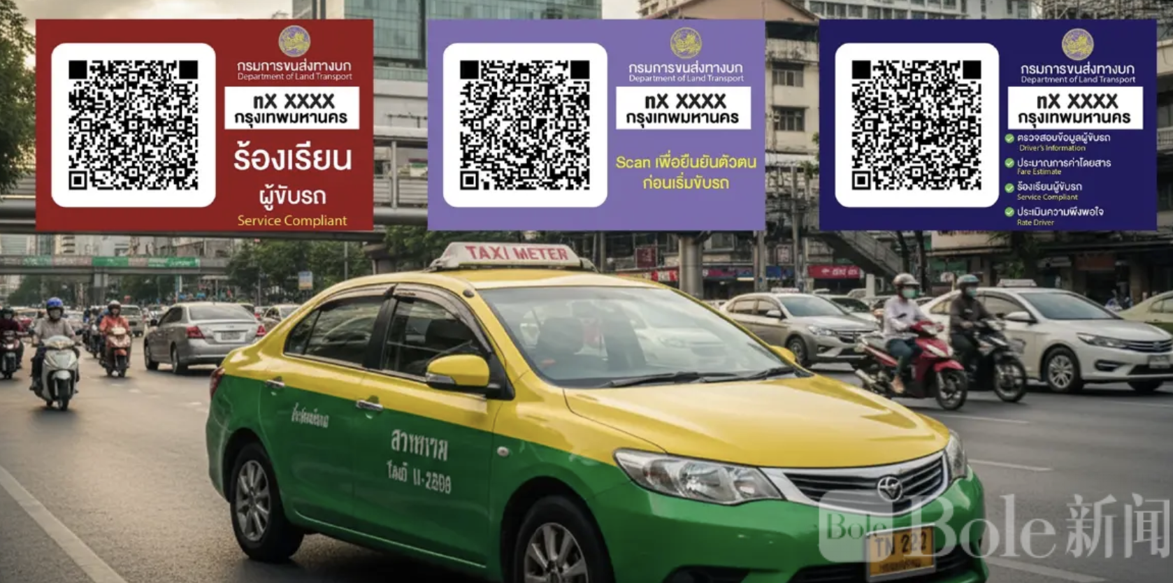 伯乐头条专讯:泰国陆路运输厅正式在全国出租车推行“三色二维码系统”,乘客只需扫一扫,就能查看司机身份、车辆资料、实时追踪行程,甚至提前估算车费与一键投诉违规行为。目前全国已有超过7万辆出租车完成贴码,预计将在今年6月前全部安装完毕。