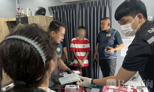 Bole新闻专讯:泰国警方近日在春武里府ศรีราชา(Sriracha)突击抓获一名38岁的男子ธนัท,他自称“ช่างบิว โมดิฟาย”,在家中非法提供男性性器改造服务,包括植珠、注射增大及其他微整操作。警方缴获一整套工具和材料,包括683颗玻璃珠、5盒填充剂、各类手术刀具与注射器等。