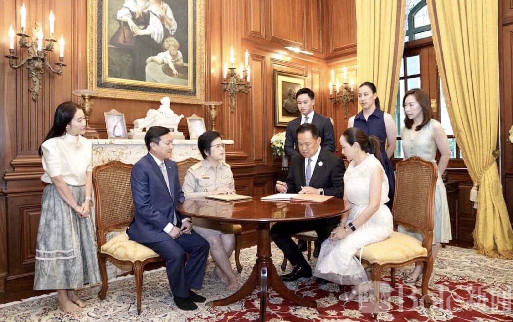 Bole新闻专讯:2月13日,曼谷Dusit区登记处工作人员应邀前往一处私人住宅,为泰国总理兼内政部部长阿努廷与妻子塔纳侬正式办理结婚登记手续。仪式在温馨而低调的氛围中举行,两人全程笑意盈盈,在儿女与多位亲友的见证下完成人生这一重要时刻。登记结束后,阿努廷随即返回岗位继续处理公务,爱情与职责之间的切换显得从容而自然。