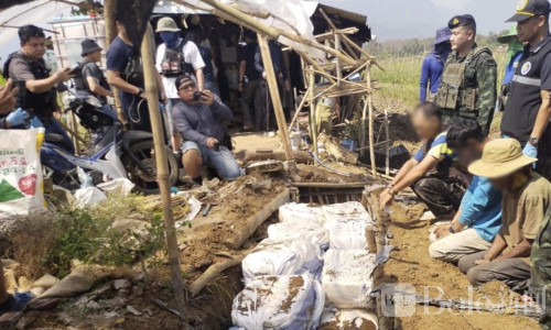 Bole新闻专讯: 泰国清莱省发生一起重大缉毒行动,当地军警联合多部门在农田中查获总计6,000,000颗冰毒,并逮捕三名涉案嫌犯。行动中,毒品被埋藏在30个麻袋中,原计划等待运往泰国中部地区。