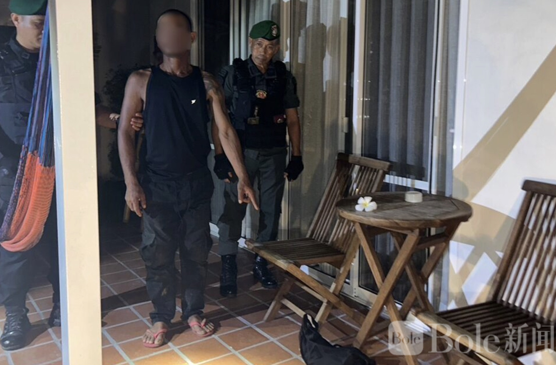 Bole新闻专讯:泰国苏梅岛一度假村近日发生盗窃案,一名34岁的缅甸男子Soe Naing OO在游客不备之际偷走其财物,用赃款购买毒品。事件发生于2月8日晚,当地游客报案后,警方调取监控录像,发现嫌疑人作案经过,并将赃物藏匿后逃离现场。