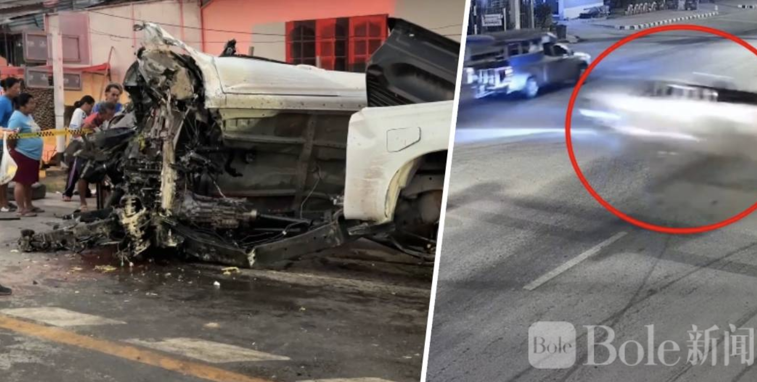 Bole新闻专讯:2026年2月22日清晨5时30分左右,泰国猜纳府色卡武里县发生一起重大交通事故。一辆皮卡高速闯红灯,在红绿灯路口连续撞击多辆车辆并冲上电线杆,造成严重伤亡。截至目前,事故已导致5人死亡、4人重伤,现场一度惨不忍睹。