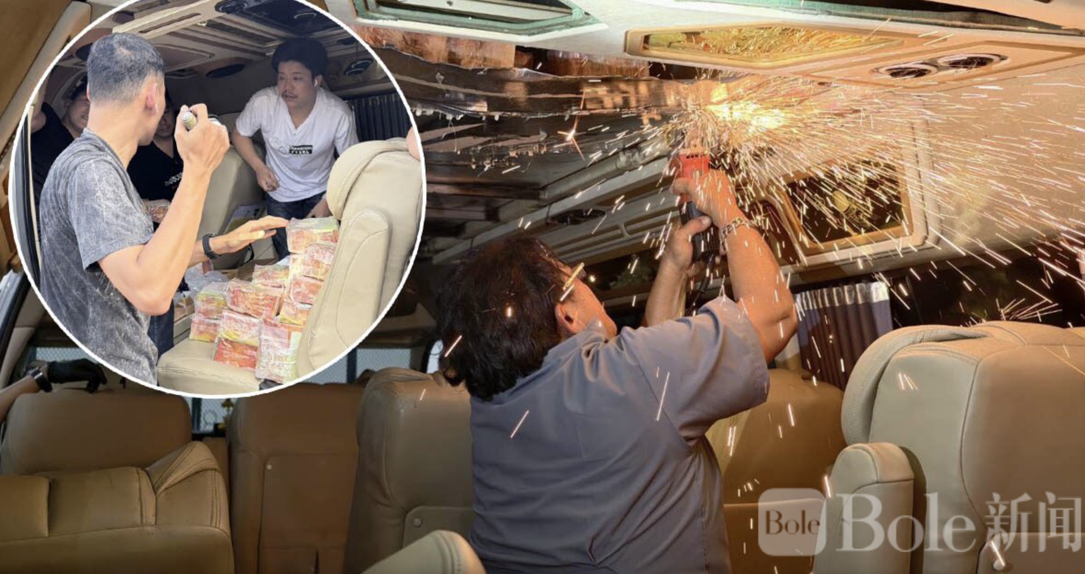 2月19日下午16时左右,警方在北碧府市区的一处警务哨所发现该嫌犯驾驶的丰田Commuter面包车存在年检过期问题。在缴纳罚款后,警方对车辆进行详细检查,意外发现车顶下方设有金属加固的隐蔽空间,藏有105袋冰毒,每袋约1公斤。此外,早先已取出的45公斤冰毒也来自同一隐蔽空间,总计达150公斤。