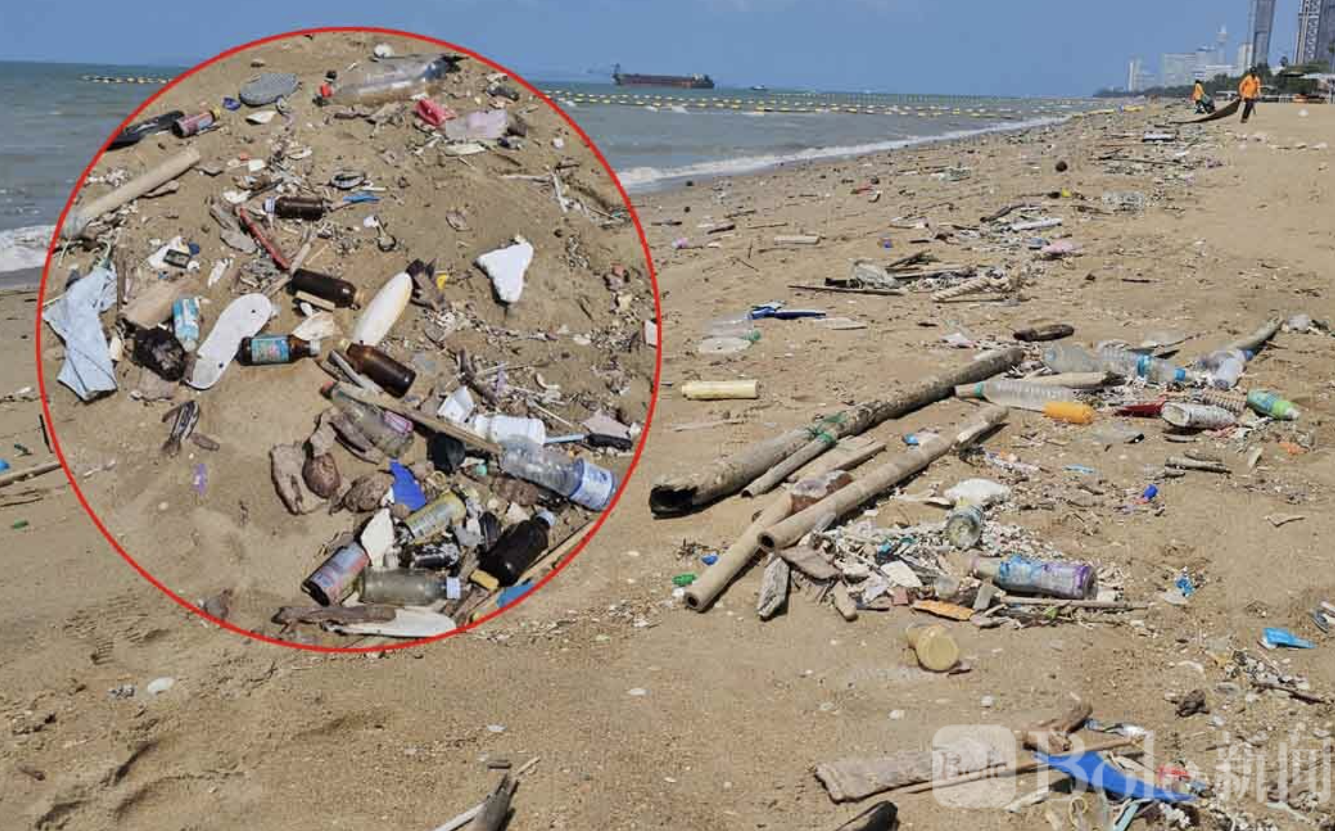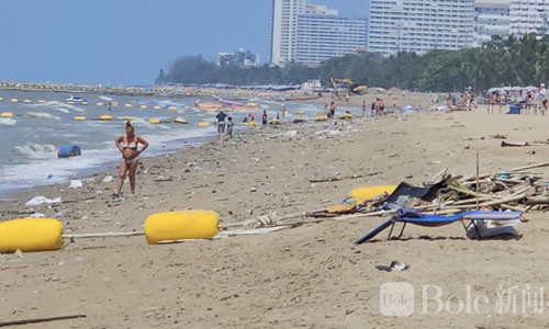 Bole新闻专讯:泰国春武里府芭提雅市中天海滩(Jomtien Beach)近日出现大面积海漂垃圾。2月22日,当地记者在邦拉蒙县中天海滩实地走访发现,大量废弃物被海浪冲上海岸,绵延数公里,严重影响海滩环境与旅游观感,市政府已紧急下令展开清理行动。