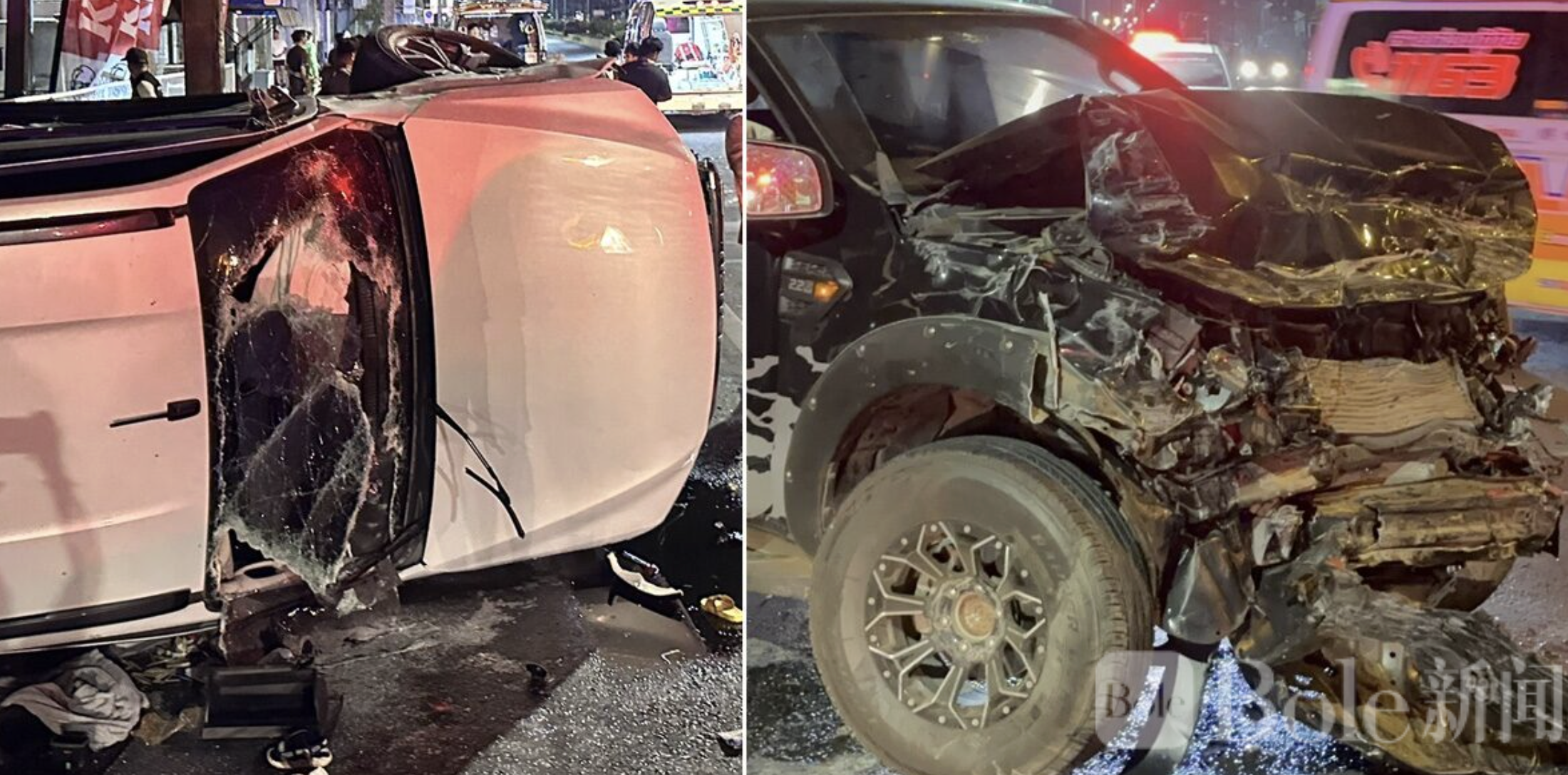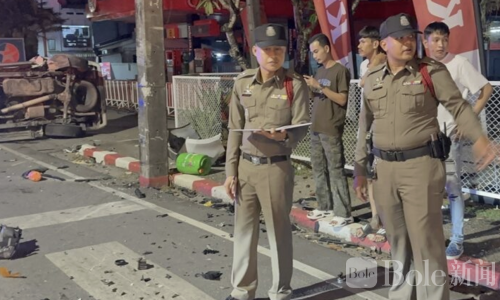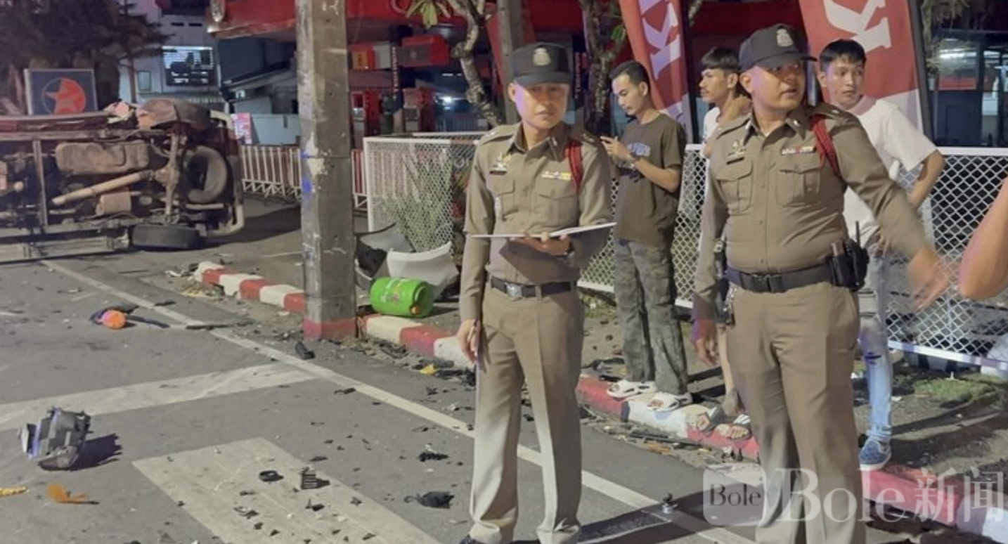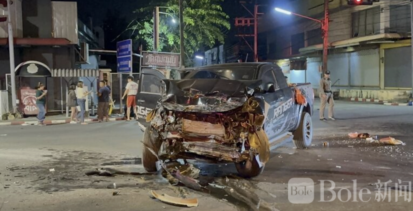 Bole新闻专讯:泰国普吉龙市2月23日凌晨发生一起严重交通事故,一辆皮卡因跟随GPS导航迷路,冲入四岔路口与另一辆皮卡相撞,造成9人受伤,多辆车辆严重损毁。