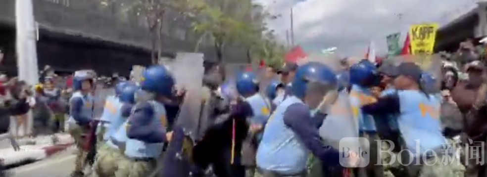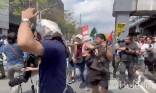 Bole新闻专讯:菲律宾马尼拉EDSA主干道周三(2月25日)下午发生抗议行动,一群民众突破警察封锁线,在EDSA-奥提加斯互通立交附近进行游行,纪念“人民力量革命”40周年。