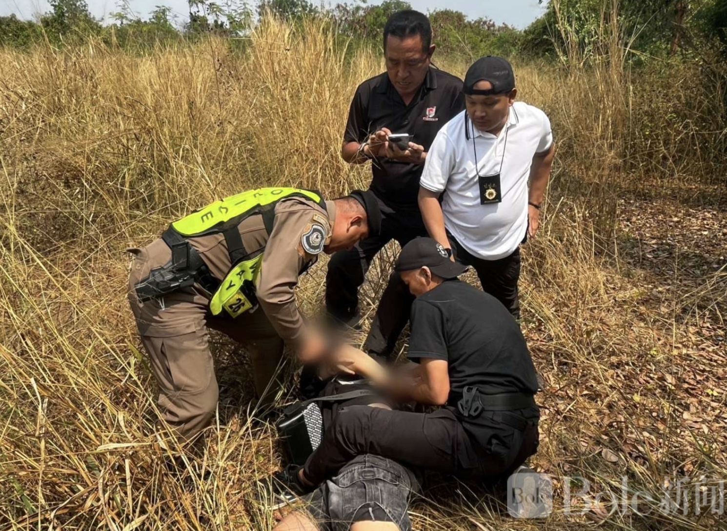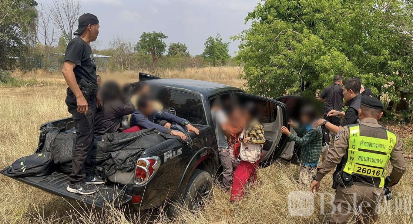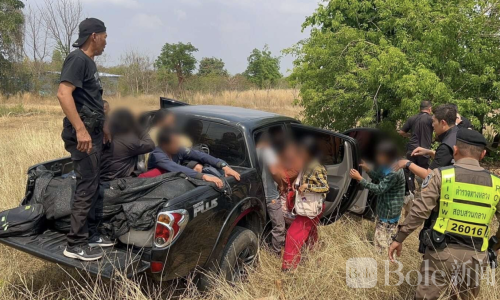 Bole新闻专讯:泰国卡拉差府警方于2月25日在323号国道71-72公里处,成功截获一辆非法运载缅籍劳工的皮卡车,共抓获14名缅甸籍劳工及司机。涉案司机为缅甸籍男子顿拉克(Ton Rak),共14名劳工中男女混杂,部分坐在车厢内,部分卧于货箱中,货物覆盖在身上,并用黑色网布遮挡以企图规避执法人员视线。