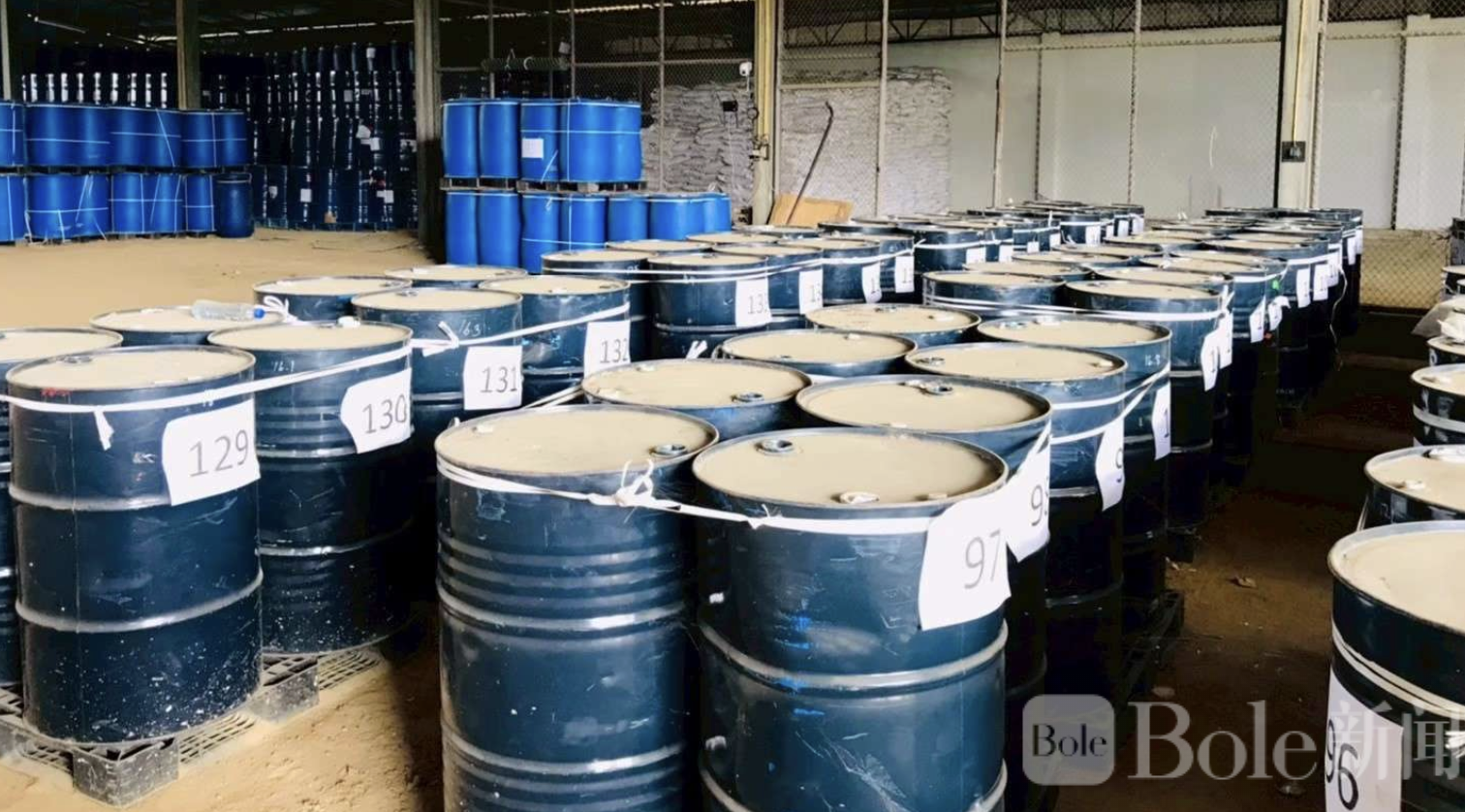 案件源于2025年末的一次联合执法行动。泰国麻醉品管制局、特案调查厅及工业工厂厅在达府湄索县一处仓库内查获大量工业化学品,总重量超过800吨。当局研判,这批货物原计划经泰国转运出口至邻国。
