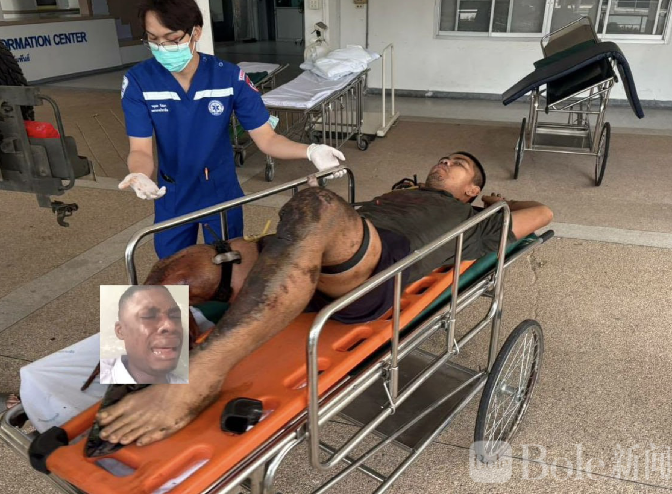 Bole新闻专讯:泰国素林府“埃拉万”军事行动区再发生地雷事故,一名隶属第233步兵连的士兵在柬泰边境巡逻时踩中地雷,右腿被炸断,左手受伤,情况危急但已脱离生命危险。